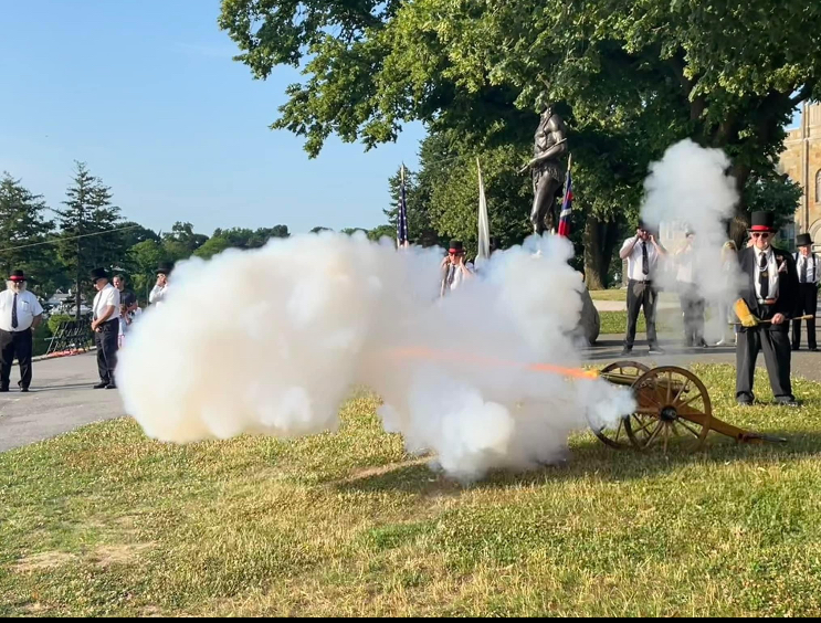 Old Colony Club members celebrated Independence Day on Thursday July 4, 2024.  Members gathered at the clubhouse at 6:00am, raised the flag at 6:30am and proceeded to Cole's Hill with the cannon at 6:45am.  Later in the day, the club marched in the town parade while their guests witnessed the parade from the clubhouse.  Photos of the day's activities are included below.